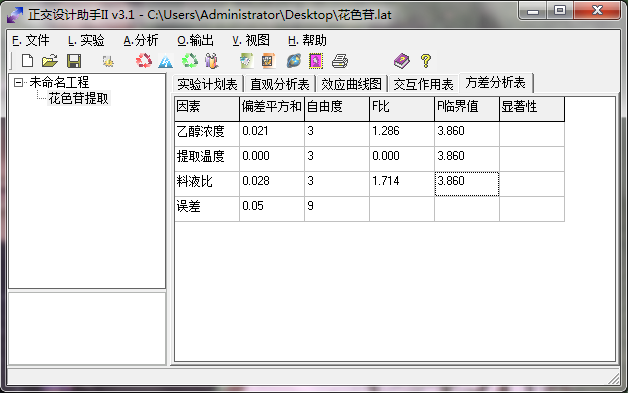你的显著性一栏是空的,没有结论啊。而且你的正交表应该列出来,看是不是不能进行方差分析,有的误差项不够时无法进行方差分析。