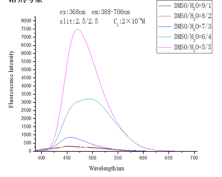各位大侠,我合成了一种以芘为信号单元,以C=N双键为识别基团的含C=N双键的芘衍生物荧光探针。它不溶于水,微溶于DMSO,当我以DMSO与水为不同的配比来检测荧光时,发现随着水的比例的增加,最大发射峰发生了红移,这是什么原因?有关于“芘衍生物荧光探针用于疏水环境中水的检测”的文献吗?
