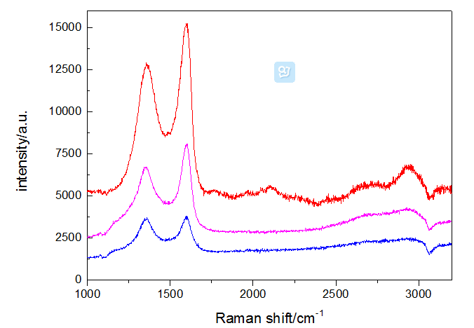 红色的是GO,其余两个是还原后的RGO。D/G比值有点低,而且基本没有2D峰,是不是不是石墨烯啊,如果不是,求大神告知会是什么??