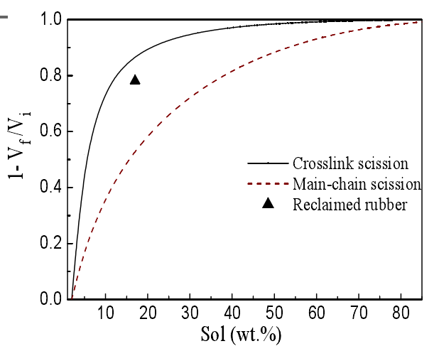 对于如何表征再生橡胶中主链和交联键断裂的情况,Horik 提出了交联键断裂和主链断裂时溶胶含量与交联密度之间的理论关系,当只发生主链断裂和只发生交联键断裂时,它们的关系式分别如下图片所示,请问如何根据这两个公式画出这两条理论曲线? 11111.png 22222.png |