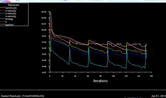非稳态条件下,残差正常,每个时间层面上大约30步收敛。