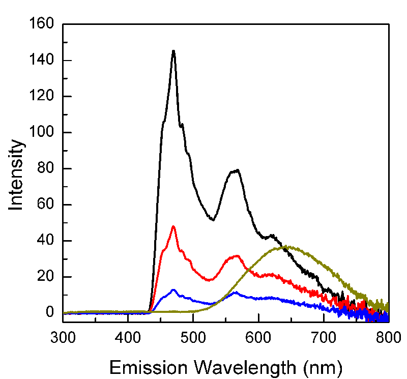 各位虫友, 本人做硅材料发光方向。材料在650 nm处有发光,通过表面贵金属处理,在蓝光区出现了发光峰,图谱如下。 问题是怎么有效的对比这两处的发光强度。(目前,它们的各种激发条件都一致 Ex=260 nm)。 需要测量子效率么,还是靠目前的光谱就可以判断呢? 多谢了 Graph2.gif |