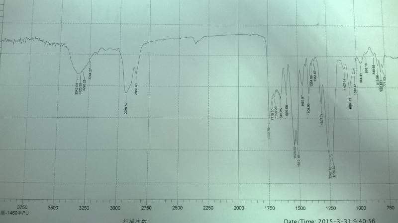 各位虫友好: 小虫最近遇到两个半PU面料,通过红外谱图比较,与之前遇到的有很多不同之处。红外谱图中有一些峰,不知是什么基团的峰,如:1512cm-1、1645cm-1等。希望能得到大家帮助。谢谢,红外谱图如下。 1460S.jpg 1170.jpg |