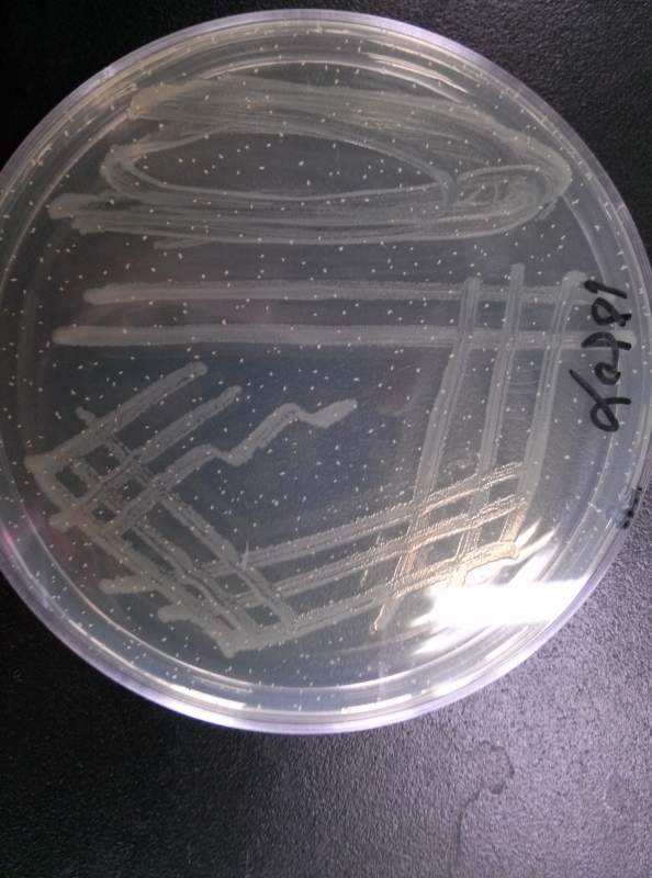 大家好,我是新虫,想向大家请教一个问题,希望能得到大家的帮助。 图片为我用KB培养基划线培养的假单胞菌,但是在培养之后培养基上长出了好多白色的小点,白色小点是硬硬的,想问这个白点是什么?由什么原因引起的?该如何去解决?谢谢~ (已经确定KB培养基并没有被污染) IMG_20150402_150745.jpg |