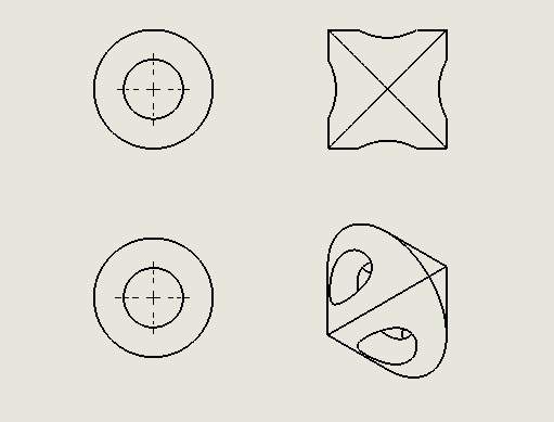![]() ![]() 无语了,本来画工程图是要有一定的规范, 其目的就是要明确的表达自己的设计意图, 要让看图的人清楚明白的了解自己的想法, 而不是用来考验人的想象能力. 同样一幅图, 其中模糊不明的地方, 每个人的想象是不一样的, 那作图者的设计意思如何准确传达??? 设计可以想象, 但绘图必须严谨, 清晰, 便于识图, 不会产生歧义. 象楼主提供的这副图, 极易产生歧义, 这样的表达方式本来就是应该极力避免的, 甚至是不允许的. 你要弄这样一幅图到现场去给施工,制造人员, 让他们自由发挥想象力来执行么??? 象这种弄一个表达不完整的图来让人猜估着补充的, 美其名日是培养想象力, 实际上本末倒置, 故弄玄虚. 就这副图而言, 你的老师应该教你们的是: 用什么方法, 怎样在工程图中把实物的形体特征完整地表达出来. 一句话, 你的老师误人子弟, 该打. |