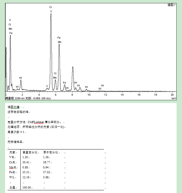 最近做了次透射,打了几个衍射斑点,可是标出来的物质是VC0.863,晶体结构角度都没问题,但跟能谱不是很一致,能谱主要是Cr和Fe,但标定中含这两类元素的物质没有一个能对得上衍射斑的,这是不是说明我标错了,求大神帮忙校对一下,该怎么标啊。不胜感激。衍射斑及能谱如图。附件为衍射斑文件。。 150X-0002.jpg 1111.PNG |