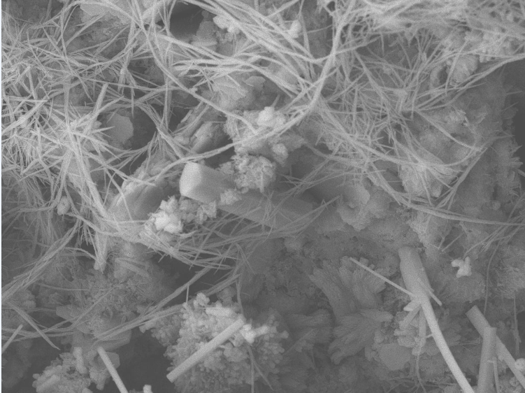 这个图是基准水泥水化三天的SEM图,做的时候没有打能谱,请问那种纤维状的是什么,谢谢了