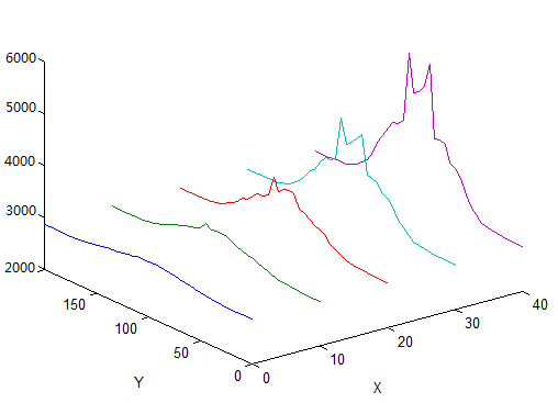 用插值法画出的二维曲线,如图所示(很多数据是没有的,通过插值法求出来的)。怎么才能在MATLAB中用这一系列曲线画出曲面呢?求大神指导
