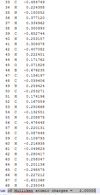 有没有一种方法可以取出下图中Mulliken atomic charge:和Sum of Mulliken atomic charges = 2.00000之间的内容? Screen Capture.png 小木虫论坛 - 学术科研第一站1.png |