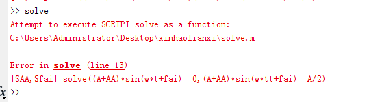 [SAA,Sfai]=solve((A+AA)*sin(w*t+fai)==0,(A+AA)*sin(w*tt+fai)==A/2)