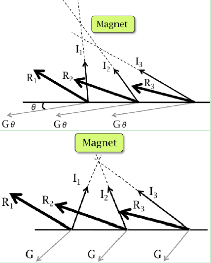 G为地磁场,I-I3为外界磁场干扰(来自同一干扰源)。R向量是G与I的合力。理想情况下存在theta使得I1-I3交于同一点。怎样求得这个theta数值 有手机磁传感器数据,数据为水平面和竖直方向的磁场强度大小(包含干扰源) 96VRR7}BZ}Y~E~RSHT}}~IV.png |