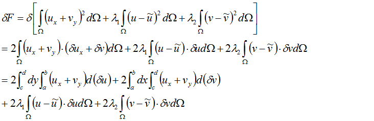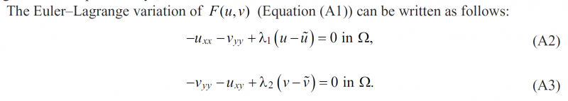 大家好,目前自己在一篇文章中最优化问题的解决比较头疼,主要是对它的一个对推导过程相当疑惑(一直是计算机专业,泛函这些都没学过)。 问题是这样的 文章中说到,通过欧拉拉格朗日变分 F(u,v), 上面的式子可以写成下面的形式 A2.png 能给一个比较详细的推导过程吗?先谢过。 |