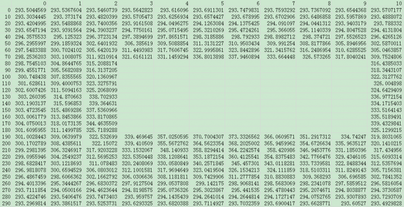 如图,第一行是X坐标,第一列是Y坐标,其他为所测数据。