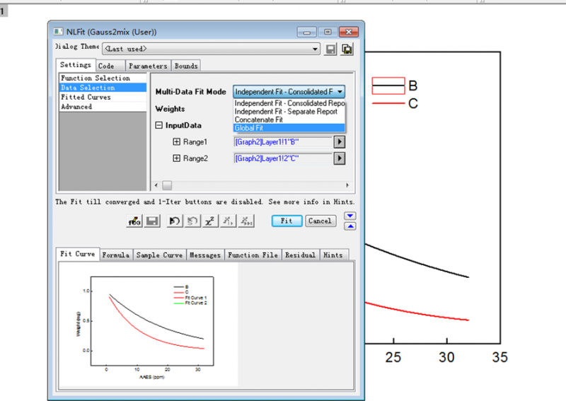 请教origin多组数据如何拟合成一条曲线