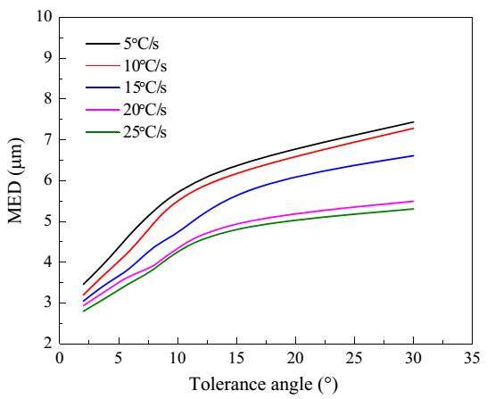 如何用EBSD测量Tolerance angle角度对应的平均晶粒尺寸