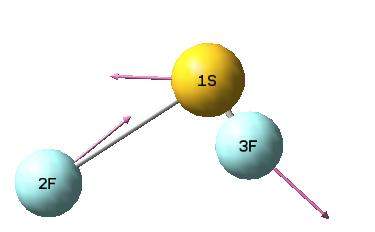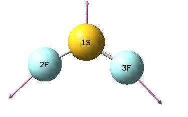 SF2单体opt+freq后在GV看振动模式如图:第二种模式是非对称伸缩(图1),第三种模式是对称伸缩(图2)。