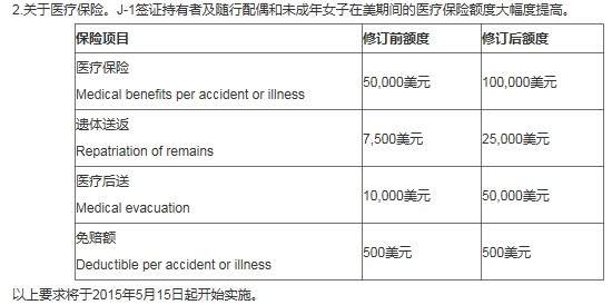 目前美国国务院正在更改J签证保险的标准。美国各校要求保险符合新标准的开始日期不同但都会在May 15, 2015或之前。泰安公司目前就有保险计划满足国务院的新标准 - 泰安计划B(TaiAn Patriot Exchange)里的每次生病或受伤最高赔付$100,000配合三种不同免赔额选项都是满足新标准的最经济实惠的保险计划。详见: