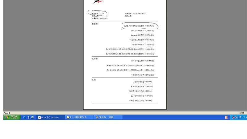 不知怎么的,突然又想起来以前做的一个BET测试结果,然后发现,在结果页面上边有个质量m=0.131g,在下面的结果中直接就给出的是36.652m2/g