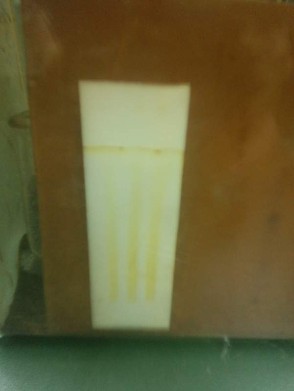 我想分离二氯甲烷-丙酮(50:50)样品中的三萜类成分,准备干法上柱,目前选择了二氯甲烷-甲醇,石油醚-丙酮系统做展开剂,显色用碘蒸汽和硫酸乙醇,效果不太理想,求各位大神指导一下 1油醚丙酮1-5.jpg 石油醚丙酮1:1 碘显色 石油醚丙酮1:1硫酸乙醇显色 氯仿甲醇10-1.jpg 石油醚丙酮1-5.jpg 石油醚丙酮甲酸1-5.jpg |