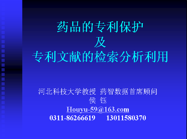 2015.3.30侯钰—药品的专利保护及专利文献的检索分析利用