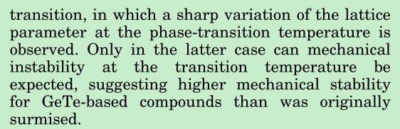 关于论述GeTe在相变温度附近机械性能不稳定,然后文章作者做了下面论述,得到其实GeTe在相变温度比我们预想的要稳定些。因为作者把相变过程分成两个部分来进行说明,我看不懂了。此段内容如下: 捕获.JPG 2.JPG |