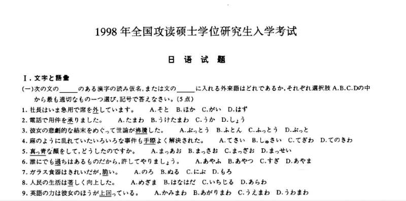 1998年全国攻读硕士学位研究生入学考试日语试题.pdf