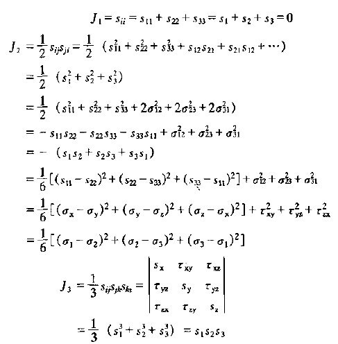 陈惠发中文版《弹性与塑性力学》P55疑问:如图所示,偏应力张量不变量的各表达式是如何得出的?
