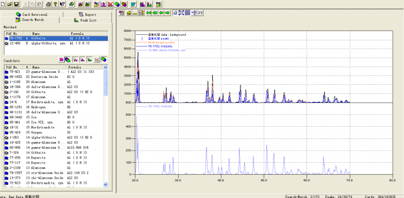 | 氧化铝水合物分为三水合物和一水合物,它们各有三种晶型,即三水铝石α-Al(OH)3,湃铝石β1-Al(OH)3、诺水铝石β2-Al(OH)3、硬水铝石β-AlO(OH),薄水铝石α-AlO(OH)以及拟薄水铝石α-AlO(OH),那么我这个氧化铝样品属于哪一种,最好能用jade分析一下,我分析不出来。 |