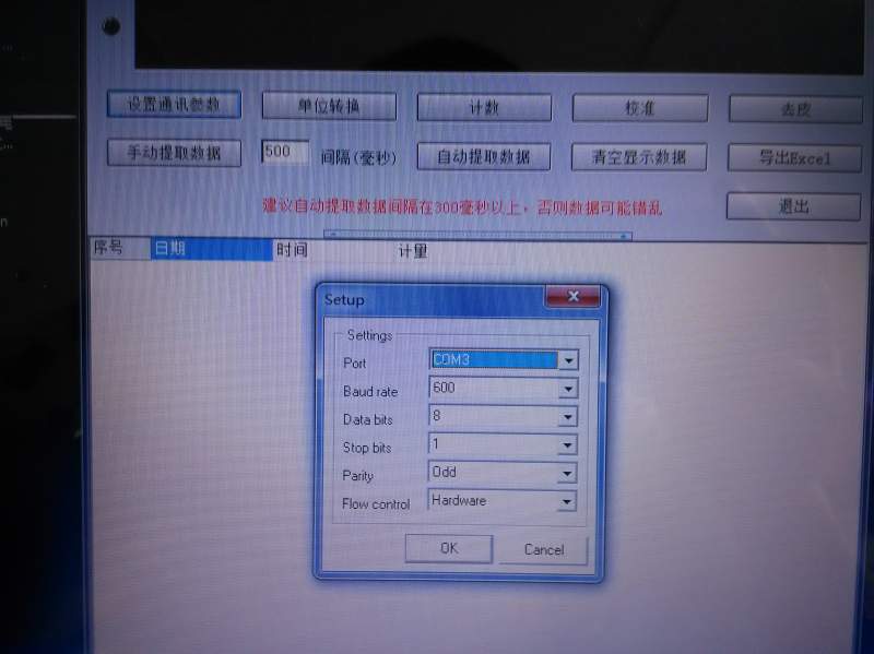 电脑上没有显示天平的数据。如下图我设置的电脑参数和软件的参数。 不知道还要弄些什么 。