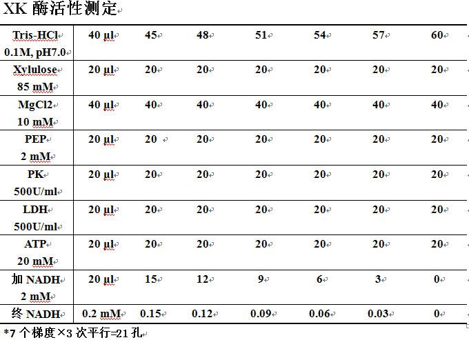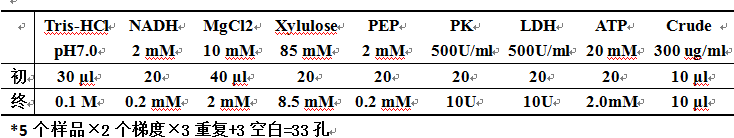 大家好,我是做木糖酿酒酵母育种的。目前的试验是测定重组菌株的木酮糖激酶的酶活。按照文献配制了协同反应物。做标曲的时候遇到问题。