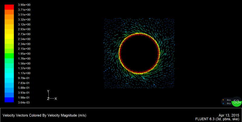 我用FLUENT仿真,一个圆柱在空气里转,FLUENT画出的一个截面的速度矢量图和等值线图的数值完全不一样,差很多,不知道哪出错了,请大家多帮忙啊!谢谢谢谢谢谢谢!!!!!新人,金币不多,请海涵。具体图如下: