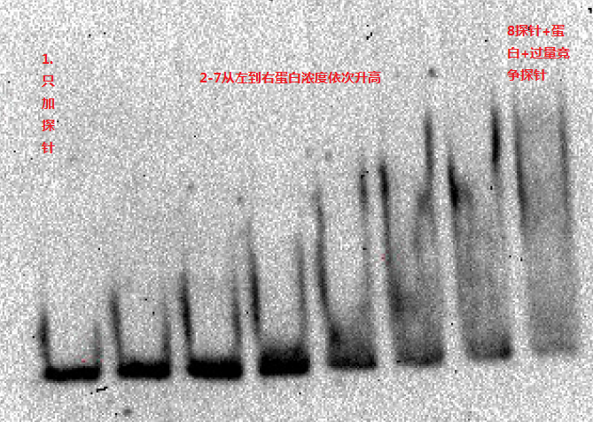 EMSA蛋白浓度梯度升高,探针带有减弱,却看不到蛋白带,求助大家!已有3人参与
