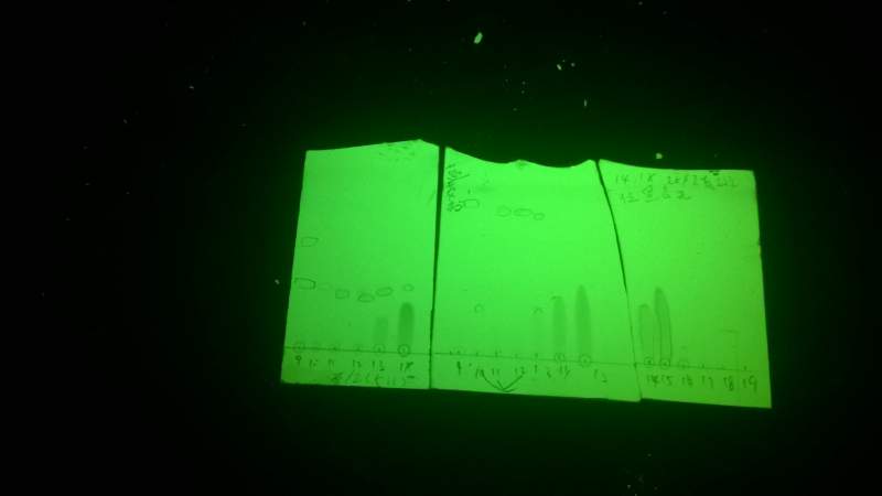 ÑÐһһö£¬×î½üÔÚ×ö·ÖÀëÀ¥³æÒ©ÎǰÆÚ×öµÄÊÇÒÒËáÒÒõ¥²¿Î»£¬ÓÉÓÚÁ¿±È½ÏÉÙ£¬·Ö³öÀ´µÄ¶«Î÷¹À¼Æ¾Í2¸öµã°É£¬µ«ÊDZ¡²ãÕ¹¿ªÓÐÒ»ÌõºÜ³¤µÄºÚÉ«ÍÏ⣬ÎÒ ÕâÒ»²¿Î»ÊÇÓÃʯÓÍÃÑ£ºÒÒËáÒÒõ¥£¨30:1£©Ï´ÍÑÏÂÀ´µÄ£¬¼«ÐÔ½ÏС¡£Èçͼ£¬¹ýÁ˶¼ÓÐ2´ÎÄý½º£¬¹À¼ÆÎÒÒªµÄÎïÖʸúÕâ¸öÍÏβµÄ·Ö×ÓÁ¿²î²»¶à£¬·Ö²»¿ª¡£ÏÖÔÚµÄÑùÆ·Êǰ×É«µÄ£¬ÔÝʱûÓйý¹ýÕýÏà¹è½º¡£ÓÐÒ»Á÷·ÝµÄÈܽâÐÔÔÚ¼×´¼ÀïÃæ²»ºÃ¡£