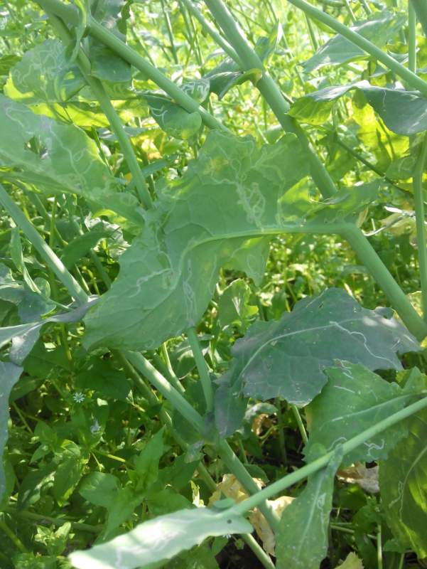发现田间油菜叶片上很多白色的条纹,类似与蜗牛爬过留下的痕迹似得,大家帮忙看看是不是得病了?或者是不是虫害?