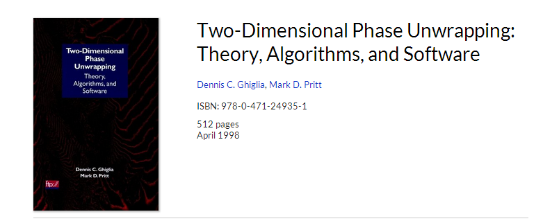 现在想找一本电子书,但是学校图书馆没有买,求助大学图书馆的资源 Two-Dimensional Phase Unwrapping: Theory, Algorithms, and Software Dennis C. Ghiglia, Mark D. Pritt ISBN: 978-0-471-24935-1 512 pages April 1998 1.png |