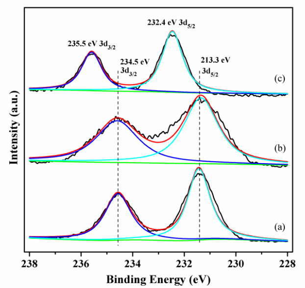 想通过这个xps说明a与b是mo的+6价,同时证明c的价态。大家帮忙看看,c物质(钼化合物)是个什么价态?