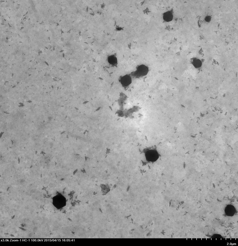 急!请问各位这张TEM图里那些除了样品外黑色的杂质是什么?