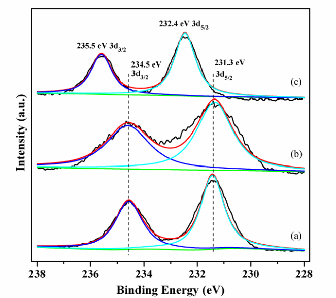 想通过这个xps说明a与b是mo的+6价,同时能得到c的价态。大家帮忙看看,c物质(钼化合物)是个什么价态?