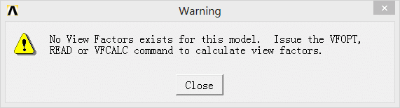 ansys热分析实例中的两同心圆柱体间热辐射分析中关于view factor。为什么我按教程操作,弹出如图的提示?所有的的操作跟教程一摸一样。实在找不出原因了。请教各位大神!!! QQ图片20150417111128.png |