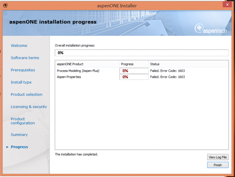 win8 安装 aspen V 8.4时出现error 1603