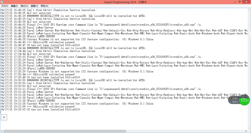 aspen崩溃一次后,重新安装出错,有重新装系统,又出错,实在shi无奈了,