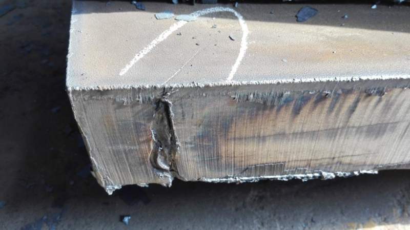 70mm厚度的钢板,切割以后断裂,没有外力作用。这个断口情况属于什么原因。 钢板碳当量0.51,C大概0.18,Mn大概1.10,还有Cr,Mo等合金。 我认为是切割裂纹,或者是HIC裂纹等等。 IMG_20150418_152857.jpg IMG_20150418_152849.jpg |