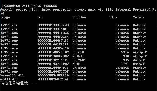 我也出现过,估计是软件哪里的原因,不明确。建议直接DB文件求解,不要调用。或者可以直接拿K文件在HPC上运行。亲测可以