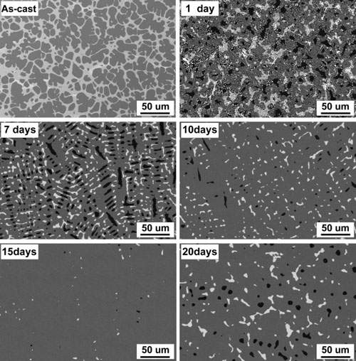 宁波材料所在新型高性能磁制冷材料性能优化方面取得的研究进展 http://www.nimte.ac.cn/news/prog ... 150612_4373083.html 传统压缩制冷技术广泛应用于各行各业,形成了庞大的产业,但它存在两个现实的问题:一是制冷效率低,卡诺循环效率仅为30%,二是含氟制冷剂的使用会导致大气臭氧层的破坏。在能源日益紧张的今天,现在普遍关心的一是节能二是环保,因此,传统的制冷技术必将面临重大改革,寻求新的、高效、无污染的制冷方式成为当今世界迫切需要解决的问题。解决的方法是或者研究开发无氟制冷剂或者找到新的制冷技术。最新发展起来的高效节能的磁制冷技术具有高效节能(卡诺循环效率为60%)、无污染、低噪音、体积小、易维护和寿命长等独特性能,被认为在冰箱、空调以及超市食品冷冻系统等一系列的领域具有广阔的应用前景。 作为磁致冷技术的关键部分,性能优良的磁致冷材料是整个系统的核心部分。磁致冷材料的重要性能之一是具有高的绝热温变,其替代性能是高的磁熵变,这也是研究者比较关心的性能。然而作为实际应用,合适的居里温度,高的磁熵变,高制冷能力,良好的机械性能,小的磁滞后和热滞后是影响其实际应用的关键因素。间隙小原子H掺杂对居里温度的调控在La-Fe-Si合金中首次被发现,后续又有研究者发现C、B等小原子对该系合金居里温度也具有调控作用。但间隙原子对居里温度调控的同时也会带来该系磁熵变不同程度的降低。优化磁制冷性能的另一个条件就是对制备工艺进行优化,并且发现快速凝固和电弧熔炼两种工艺对不同材料体系性能的优化具有不同的作用。此外由于具有高磁熵变的磁制冷工质一般都具有一级相变,磁滞后/热滞后也是影响其应用重要的因素之一,只有对影响滞后的内在机制进行系统研究才可能有效降低滞后。 中科院宁波材料所稀土磁性功能实验室系统研究了NiMnSn赫斯勒合金的磁制冷性能。把间隙原子C引入到NiMnSn合金中,不但显著提高了居里温度(提高了50K),并且磁熵变也获得了大幅度的提高(26%):从未引入间隙原子的27.4 J(kgK)-1提高到了34.6 J(kgK)-1。针对该系合金非常脆,难以加工的问题,我们提高了C的引入量,利用其内生的碳化物作为弥散强化点,使得合金的机械性能也获得了大幅度的提高(82.7%):其压缩强度从未引入C的556MPa提高到了1016MPa。该工作发表在Scripta Mater. 75,26(2014)),IF 2.968。前期针对NiMnSn合金磁制冷性能的进一步优化,该实验室系统研究了电弧熔炼和熔体快淬两种工艺对马氏体相变相关的磁性进行了系统研究,发现熔体快淬对该系性能优化起到了非常重要的作用,该工作在Scripta. Mater. doi:10.1016/j.scriptamat.04.004(2015)上进行了连续报道。近期针对熔体快淬后的退火工艺进行了进一步的优化,最大磁熵变达到了43.2 J(kgK)-1,制冷能力达到115.4 J(kg)-1。更具有重要意义的是,通过对微观组织、微观成分、原子有序度等角度对马氏体相变的内在机制及磁性和磁制冷性能的影响进行了深入的探讨,对如何在提高磁熵变的同时来降低马氏体相变的滞后给出了具有指导性的研究方法,为获得高性能磁制冷材料提供了重要的理论指导。该工作发表在Nature旗下的Sci. Rep. 5,11010(2015), DOI: 10.1038/srep11010。 该系列研究工作得到国家优秀青年基金(51422106)和浙江省杰出青年基金(LR12E01001)等项目的资助。 不同退火时间条带的MT曲线 不同退火时间条带的磁熵变曲线 随退火时间微观组织的演变 随退火时间晶体结构(有序度)的演变 |