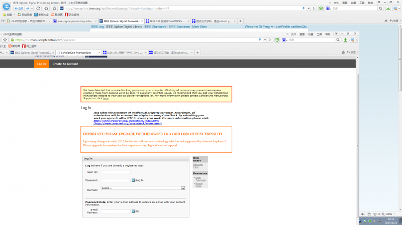 在期刊主页submit your manuscript时总是弹出这个 We have detected that you are blocking pop-ups on your computer. Blocking all pop-ups may prevent peer-review related e-mails from popping up to be sent. To avoid any potential issues, we recommend that you add your ScholarOne Manuscripts website to your pop-up blocker exceptions list. For more information please contact ScholarOne Manuscripts Support or click here 请问该怎么办??? |
