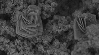 普通铁碳填料表面的图 很多这种类似于花一样片状的物质~ 当时只拍了电镜图, 看了一些文献,但是都没有类似结构的物质出现!!