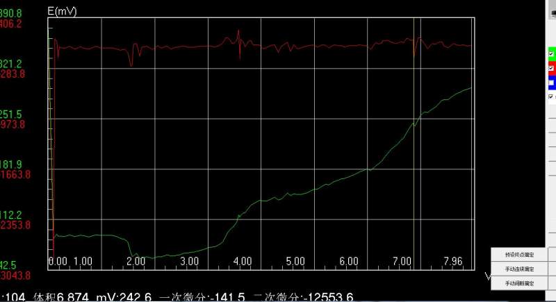这是我做的高氯酸无水滴定结果,滴定终点不好判断,请问图中6.874min处是否为滴定终点?(上下两图为同一张) 360反馈意见截图16320215637661.jpg 360反馈意见截图16430929547650.jpg |
