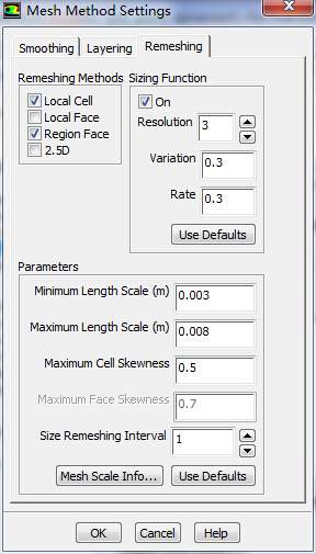 利用fluent动网格做机翼的升沉运动流场分析时,采用smoothing+remeshing进行网格重构,当升沉幅度较大时,为机翼弦长的0.6倍,发现fluent只对运动机翼的附近进行网格重构,离机翼较远的网格尺寸变得很大,影响网格质量,求CFD高手帮忙解决,还要设置什么内容?