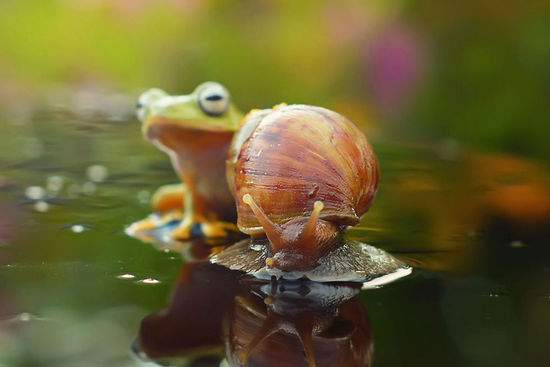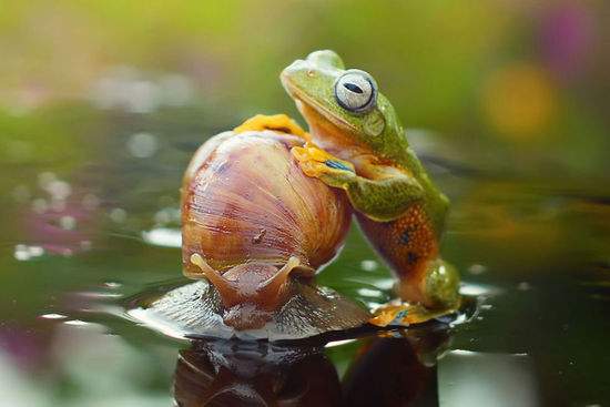 雨蛙与蜗牛相恋了 "搭便车"过河一幕感动网友已有10人参与