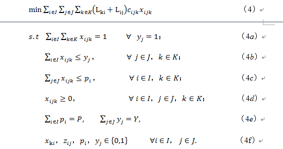 求大神帮忙求解这个二级物流模型 ,是分别对垃圾运输中转站及垃圾处理场选址,使得总的运输成本最小。k为垃圾产生点,i为中转站,j为垃圾处理场,选择p个中转站和Y个处理场,Lki+Lij 为两阶段距离,Cijk为单位距离运输费用,这些都已知,Xijk为第k个垃圾产生点占第j个垃圾处理场中产生点的比例~Xki是由k产生运到i处为1,否则为0.Zij同理,Pi 为在i处设置中转,Yj为在j处设置垃圾处理场~求各位大神指导详细算法过程,lingo或者matlab编程解法!跪谢!急用!